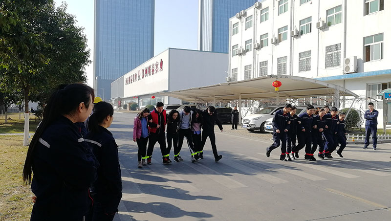 農曆正月初六 下午2點 綁腿跑活動是以部門為單位派出6人(三男三女)以左腿綁右腿的形式向前行走,先到達終點者獲勝,這是考驗夥伴之間默契的遊戲,主要是培養員工相互協作的團隊精神。